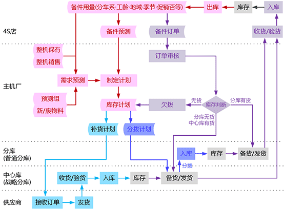 - 配送清单(BOD,Bill of Distribution),用于定义库间及到4S店或维修站的配送关系。